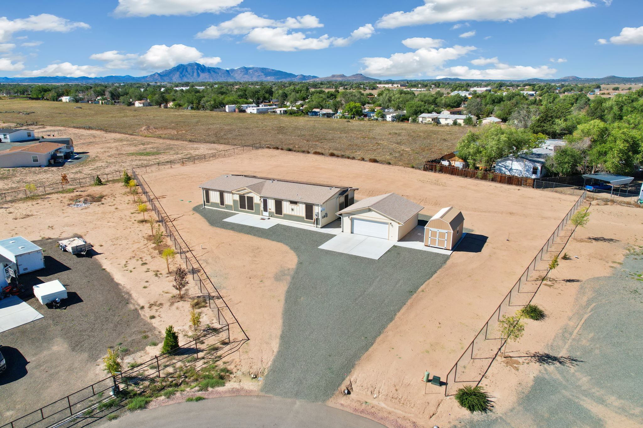 Welcome to this beautiful 2023 manufactured home located in the desirable Del Sol North subdivision of Chino Valley. Set on a fully usable, flat 1-acre lot, this property offers incredible mountain views, abundant natural light, and a peaceful setting that perfectly blends modern comfort with rural charm. Inside, you'll find an open-concept layout featuring both a spacious living room and a separate family room-ideal for entertaining or creating distinct living space. the kitchen is a true centerpiece with a large island, ample cabinetry, and seamless flow into the dining and living areas. A split floor plan provides privacy, with a generously sized primary suite on one side and additional bedrooms and a full bathroom on the other.